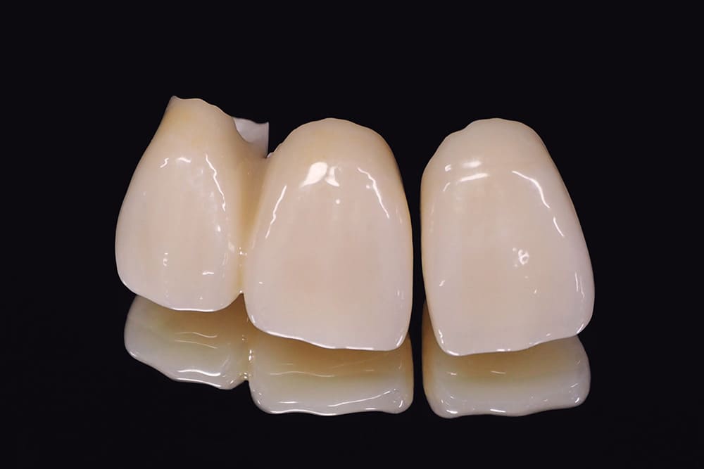 前歯部には、強度を保ちながら審美的な透明感のある素材を使用し、自然な見た目に仕上げます。