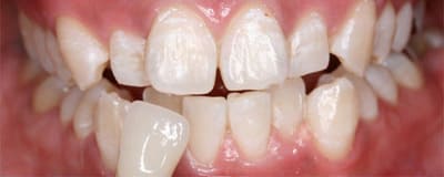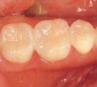 - 天然歯と比べて色の変化が少ないため、周囲の歯の色調が変わった際に、色の違いが気になる場合があります。